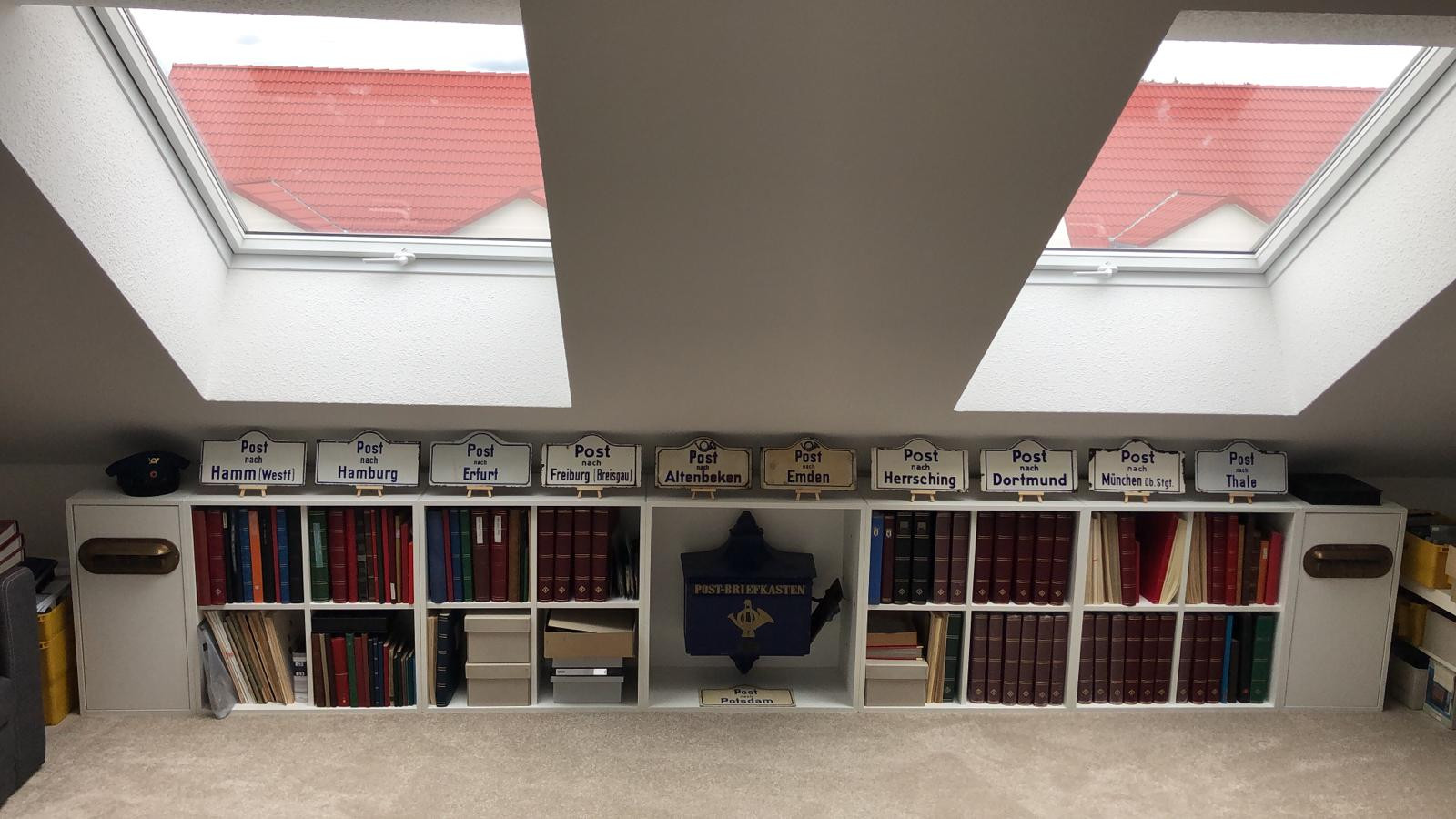 Aufgrund meiner Leidenschaft für die deutsche Postgeschichte und dem damit verbundenen Platzbedarf habe ich mich dazu entschlossen mein Dachgeschoss auszubauen. Über einen Zeitraum von ca. 4 Monaten harter Arbeit und tatkräftiger Unterstützung aus meinem handwerklich begabten familiären Umfeld erstreckte sich der Ausbau. Auf meiner To-Do-Liste standen viele Etappenprojekte wie der Aufbau des Dachstuhls und Verlegen der Dachziegel, sowie der Einbau der neuen Dachfenster. Anschließend erfolgte die Wärmedämmung und das Anbringen der Rigipswände welche wir dann tapeziert und gestrichen hatten. In den Seitenbereichen hat ein befreundeter Elektriker Steckdosen gesetzt, das Verlegen der Fußbodenheizung und das Verteilen des Estrichs für den Fußboden waren die finalen Schrittes dieses schweißtreibenden Projekts. Trotz zahlreicher Hürden und Dauerbesuchen in diversen Baumärkten kann sich das Ergebnis sehen lassen und ich habe nun viel Platz für mein Hobby!