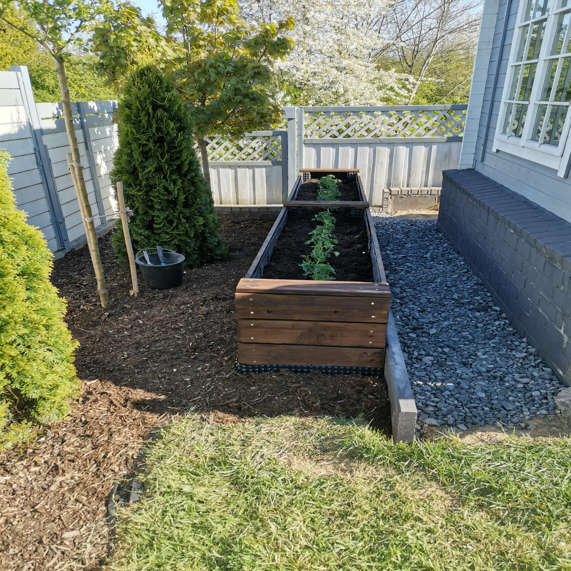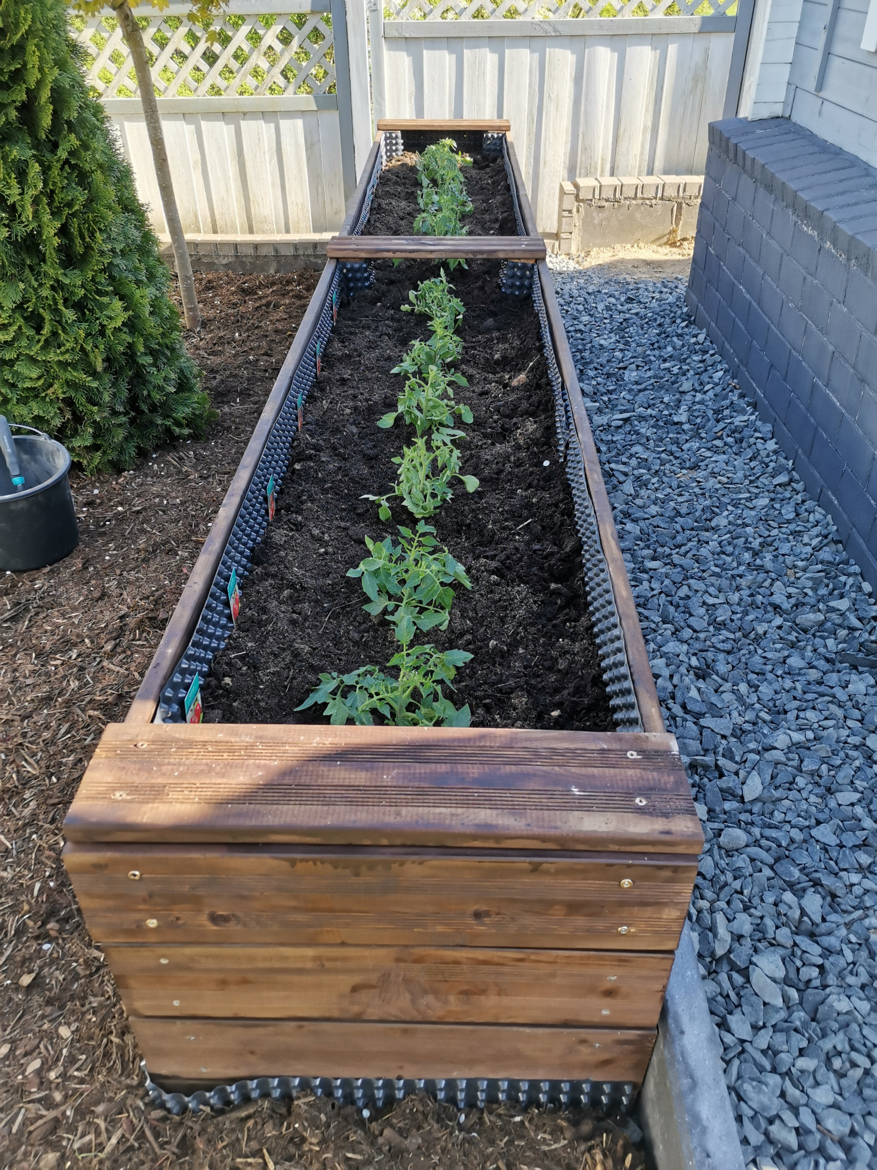 Für die Tomaten gab es kein passendes Plätzchen bis wir die Idee mit dem Hochbeet umgesetzt haben. So entstand im Garten ein Hochbeet für die Tomaten. Jetzt haben die Tomaten ein super vor Wind geschütztes Plätzchen zum Wachsen. Das Hochbeet ist aus Holz gebaut und das Holz speziell lackiert. Meine Eltern haben mich beim Bau des Hochbeets unterstützt. Wir haben 1 Woche gebraucht.