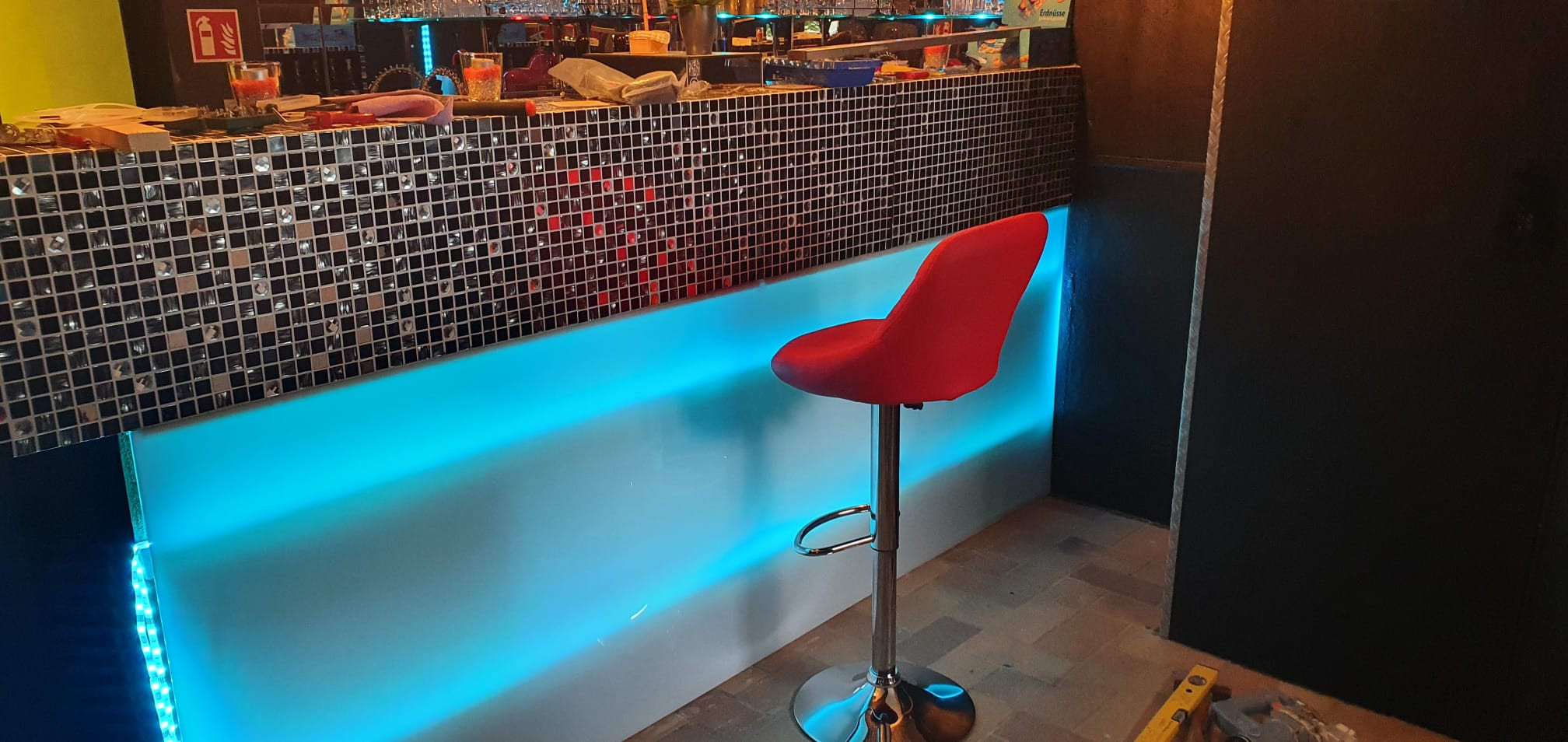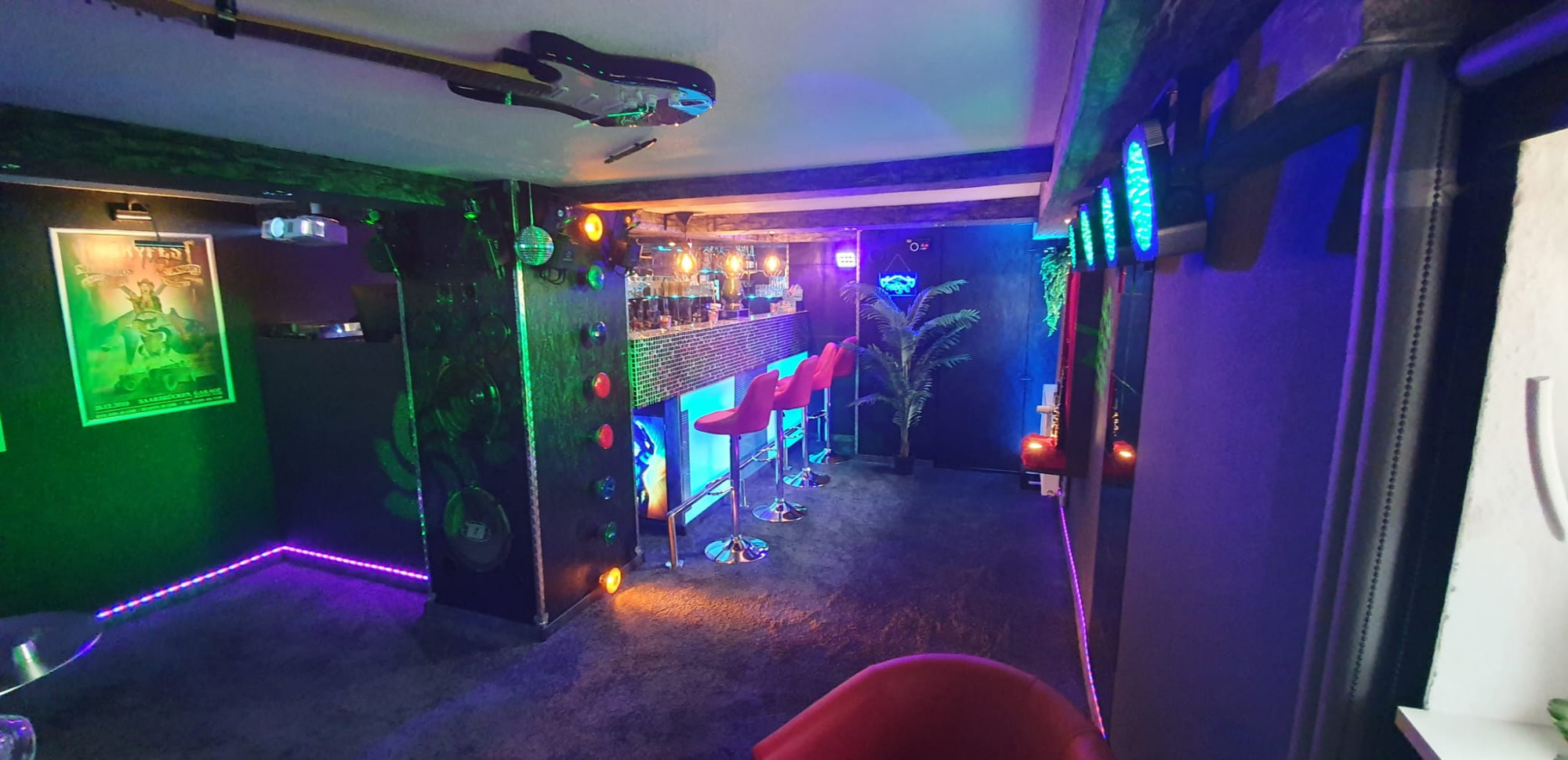 Mein Mann hatte den Wunsch schon lange vom eigenen modernen Partykeller. Er hat sich diesen Traum mit seiner Tochter in mehreren Jahren erfüllt. Da er berufstätig ist hatte er meist nur am Wochenende Zeit zum bauen. Aus zwei Kellerräumen wurde dann mit eigener Handarbeit ein toller Partykeller gebaut. Materialen wie Holz, Spiegelfliesen, Tapete, Fenster, Gips und Teppich wurde alles wie eigenständig geplant, verarbeitet. Auch das Lichtequipement mit Strom- und Steuerverkabelungen von 2, 5 km Länge wurden verbaut. Mit viel Liebe wurde nach und nach alles schön dekoriert und eingerichtet. Nun können wir viele Partys feiern, Filme oder egal was auf dem Beamer schauen. Dazu noch Karaoke spielen und feiern in einer tollen Bar Atmosphäre. Er hat es genau so gebaut wie er es geplant hatte. Ich bin ihm und unserer Tochter sehr dankbar für die vielen Stunden, Tage, Monate und Jahre,die sie daran gearbeitet haben . Es hat sich gelohnt.
