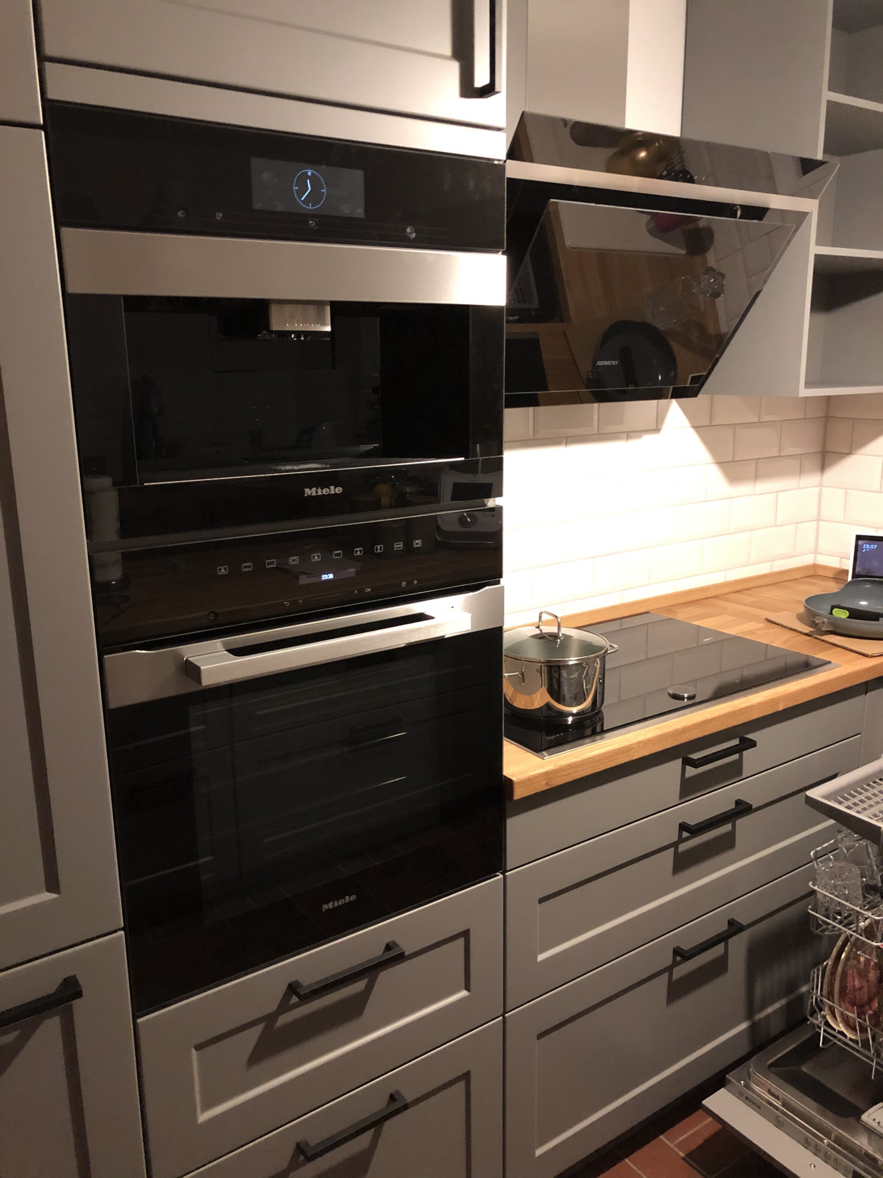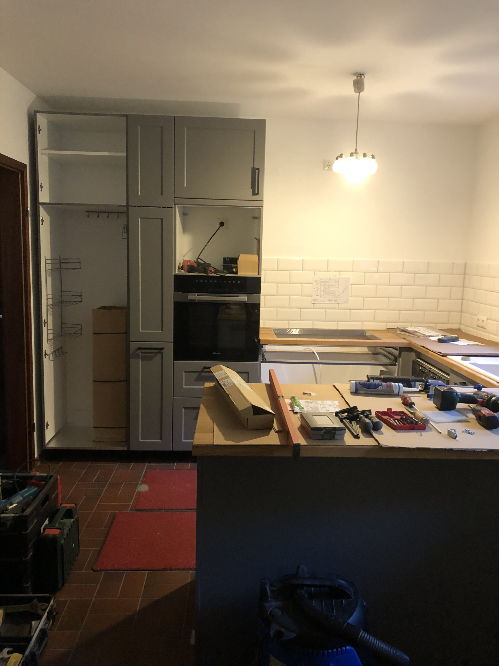 Nach über 33 Jahre haben wir die Küche erneuert. Dabei alles Beläge entfernt, Leitungen erneuert und dann die neue Küche eingebaut. Insgesamt viel Neues gelernt beim Fliesen, Leitung mit Schlitzen vorbereitet und später die Kücje aufgebaut. Hilfe bei Sanitär und Elektro eingeholt. Hat sich gelohnt.
